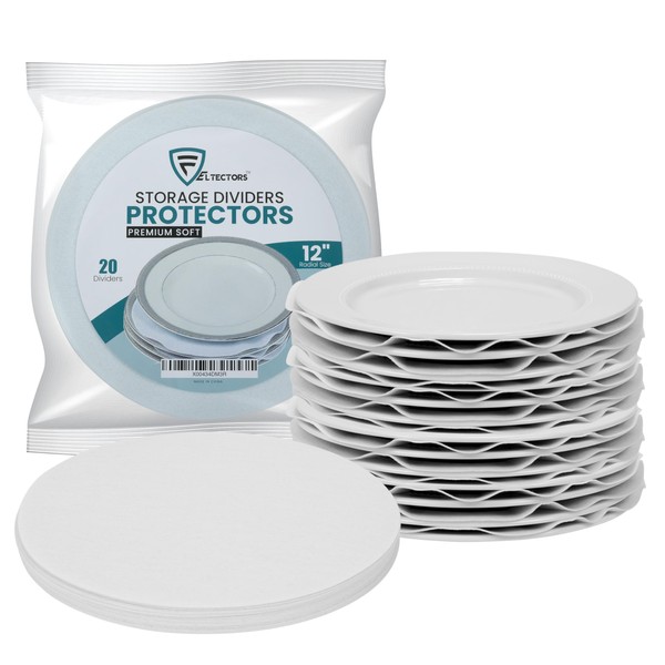 Feltectors Felt Plate Dividers for China – 12" Soft Felt Dish Protectors for Stacking Dinnerware – Scratch-Free, Chip-Resistant Storage for Cabinets - 20 Pack (WHITE, 12" 20 PACK)