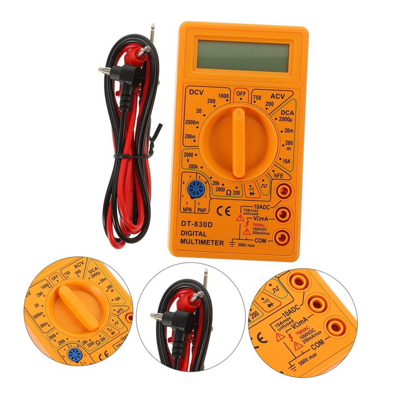 1 x DT-830D Digital Multimeter with Buzzer Output Voltage Ampere Ohm Tester Probe DC LCD Overload Protection (Yellow)
