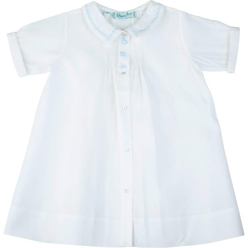 Feltman Brothers Baby Boy White Train Daygown with Blue Embroidery (NB)