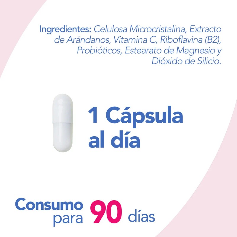 🌸 Fórmula patentada con probióticos + extracto de arándano 🍒 que cuida tu salud íntima, digestiva y urinaria 👩⚕️. Rinde 3 meses 💪, sin gluten, sin lácteos y fácil de absorber 💖
