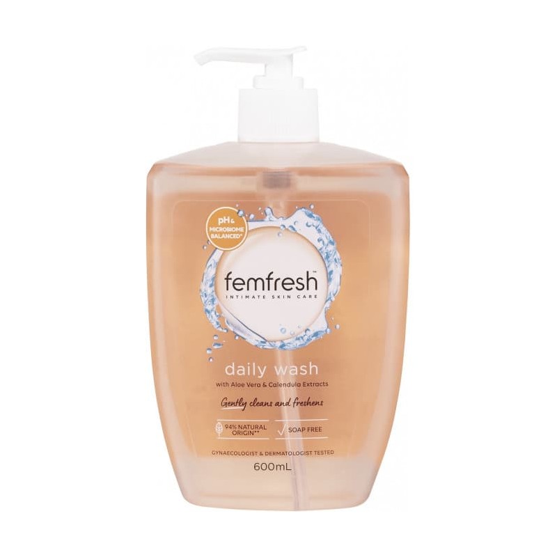 This soap free daily wash has been specially formulated to cleanse intimate skin whilst helping maintain a healthy pH-balance. The low pH of the intimate area helps to protect against irritation and this can be upset by ordinary washes, soaps and shower gels. Femfresh, with its pleasant fragrance and soothing extracts of aloe vera, provides long lasting freshness. Femfresh Daily Intimate Wash is hypoallergenic, soap free, dermatologically and gynaecologically tested and is suitable for everyday use.