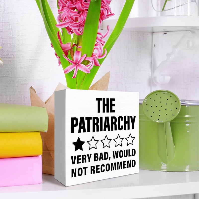 Feminist Decor Wooden Box Sign, Feminist Desk Decoration for Home Office Cubicle Girl Bedroom Human Rights Resist Anti Patriarchy Sign, Empowerment Strong Women Girl Power Gifts