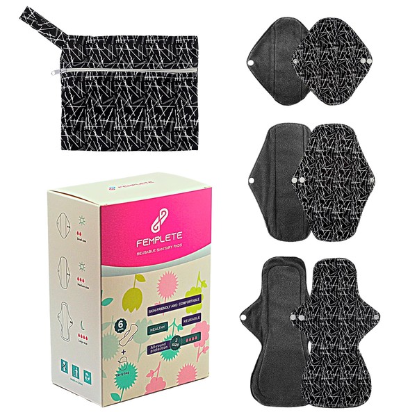 Femplete Reusable Sanitary Pads (Small, Medium, Large, 6)