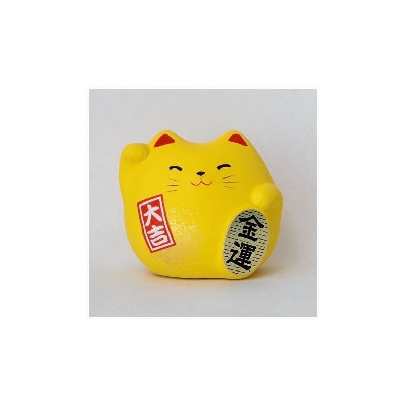 Feng Shui Good Luck Beckoning Cat Figurine (chibi cat) Yellow Thousand Old Grilled