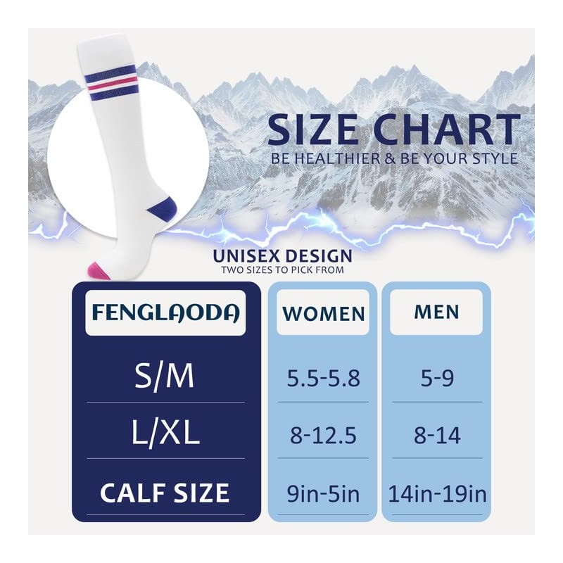 - fenglaoda compression socks come in many unique designs, non-slip ribbing, progressive compression, thickened heel and toe, and arched support;compression socks knee high also protect calves and ankles.