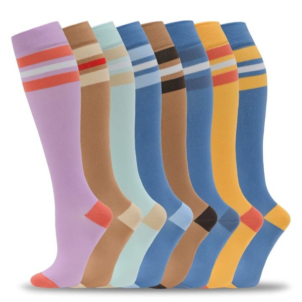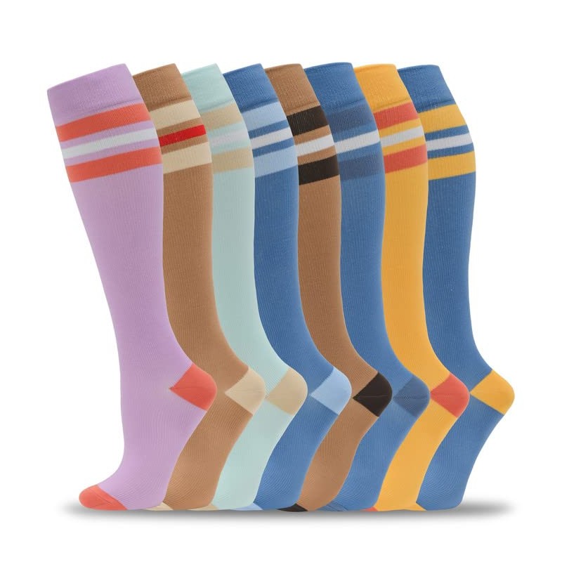 fenglaoda 8 Pairs Compression Socks for Men & Women 20-30 mmHg Knee High Nurse Pregnant Running Medical and Travel Athletic