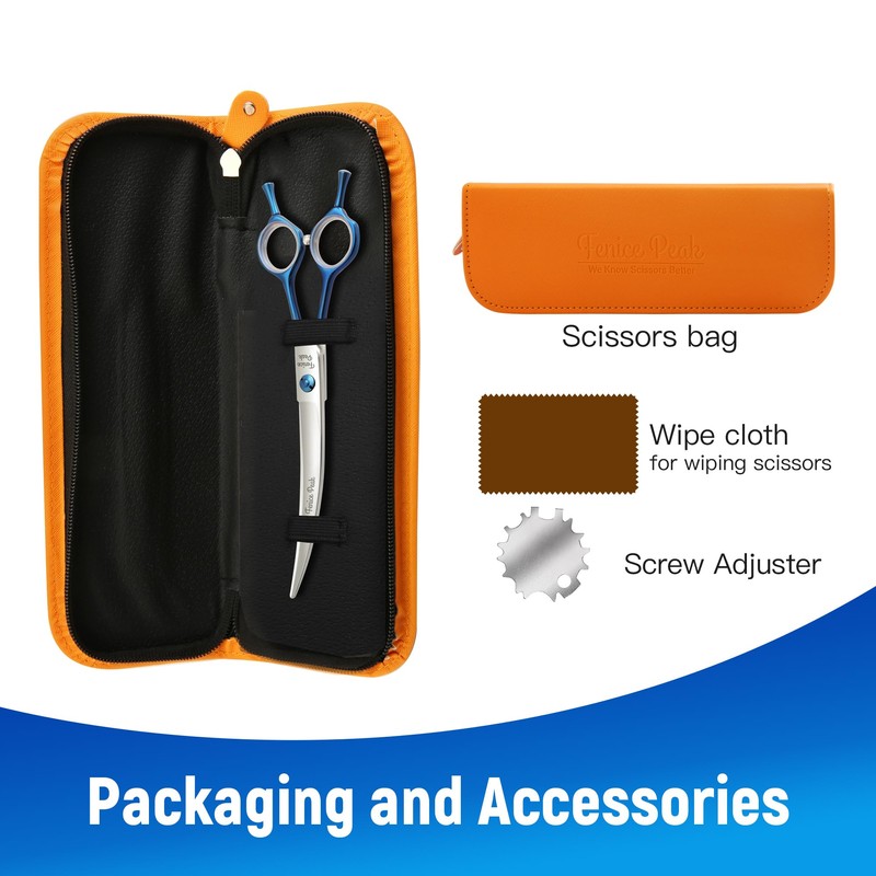 Fenice Peak Grooming Scissors for Dogs 7 inch Curved Pet Grooming Scissors Ergonomically Designed Blue Handles Ideal Dog Shears for Precise Trimming Easy Use.