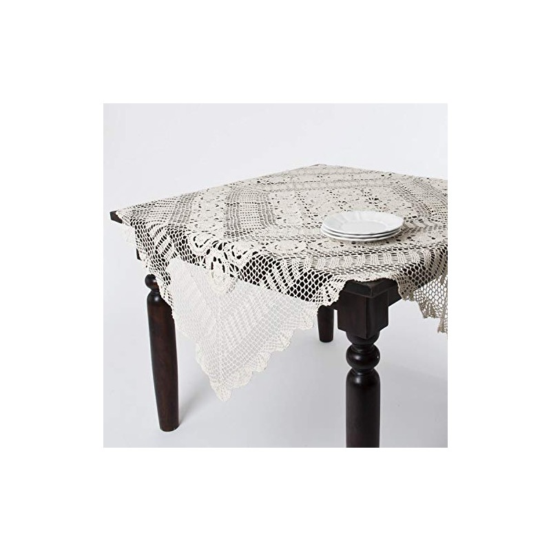 Fennco Styles Handmade Crochet Lace Cotton Tablecloth (54" Square Table Topper, Ecru)