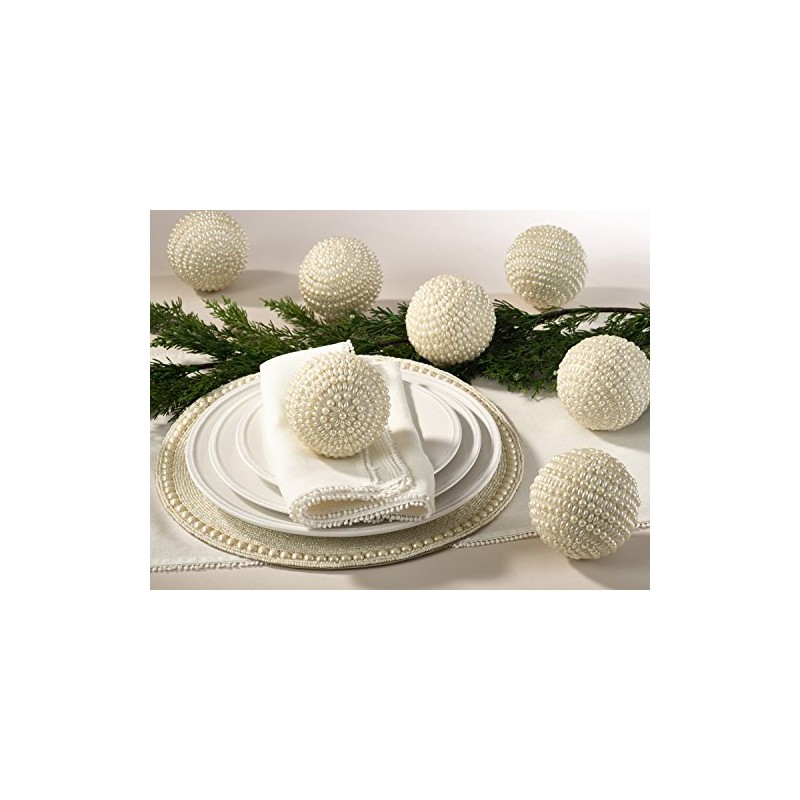 Fennco Styles Pearl Design Ornament Decorative Balls - Set of 4 (Ivory)
