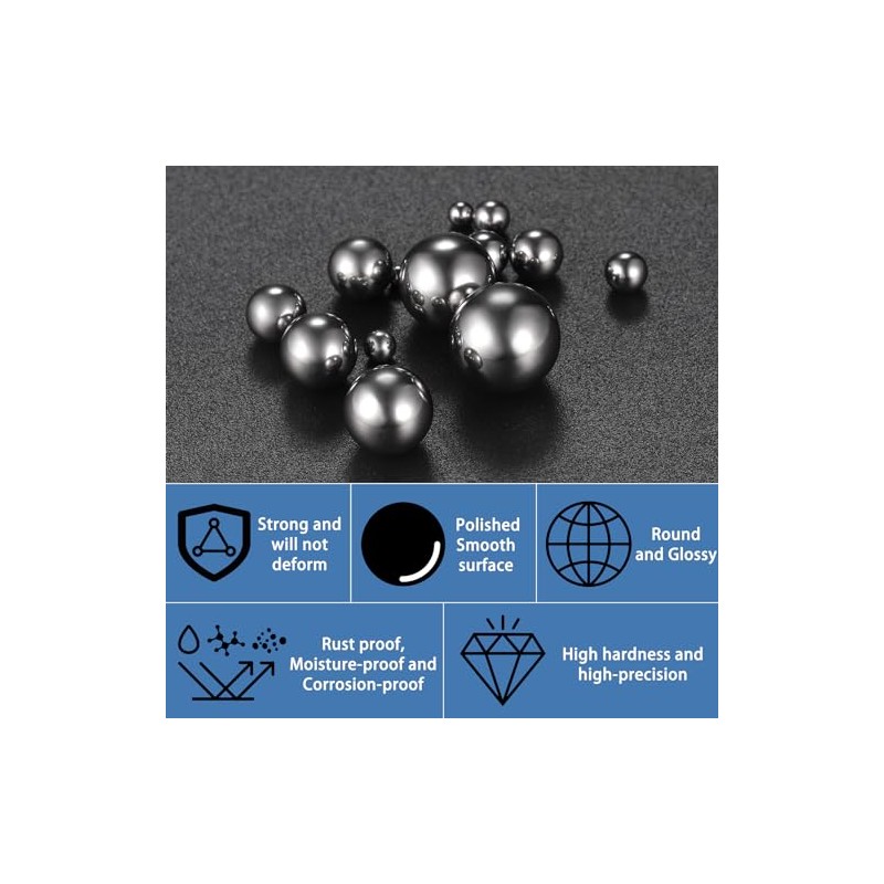 - Wide ApplicationThe steel ball bearings can be widely used in bicycles wheel, auto parts, bearings, casters, drawer slides, DIY projects, door locks, and a variety of small machinery applications, including skateboard wheels, inline skates, and electric motors, instrumentation and more.