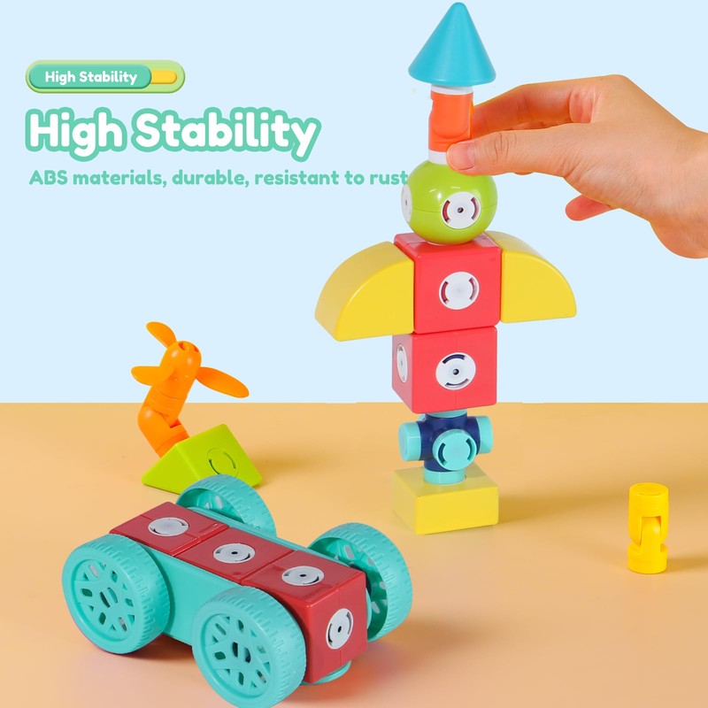 - 【Safe Size for Toddlers】1.37 inch Large anti-swallow particle design,comfortable to hold and perfect for toddlers to play. Never too early to start developing kids creativity.Develop kids' imagination, creativity, motor skills and social skills by playing these magnetic building blocks.