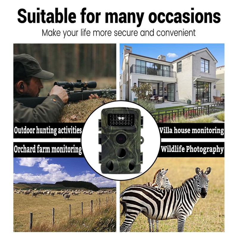 Aplicaciones amplias: Esta cámara se puede usar ampliamente para actividades de caza al aire libre, monitoreo de casas, monitoreo de granjas, observación de vida silvestre, etc.