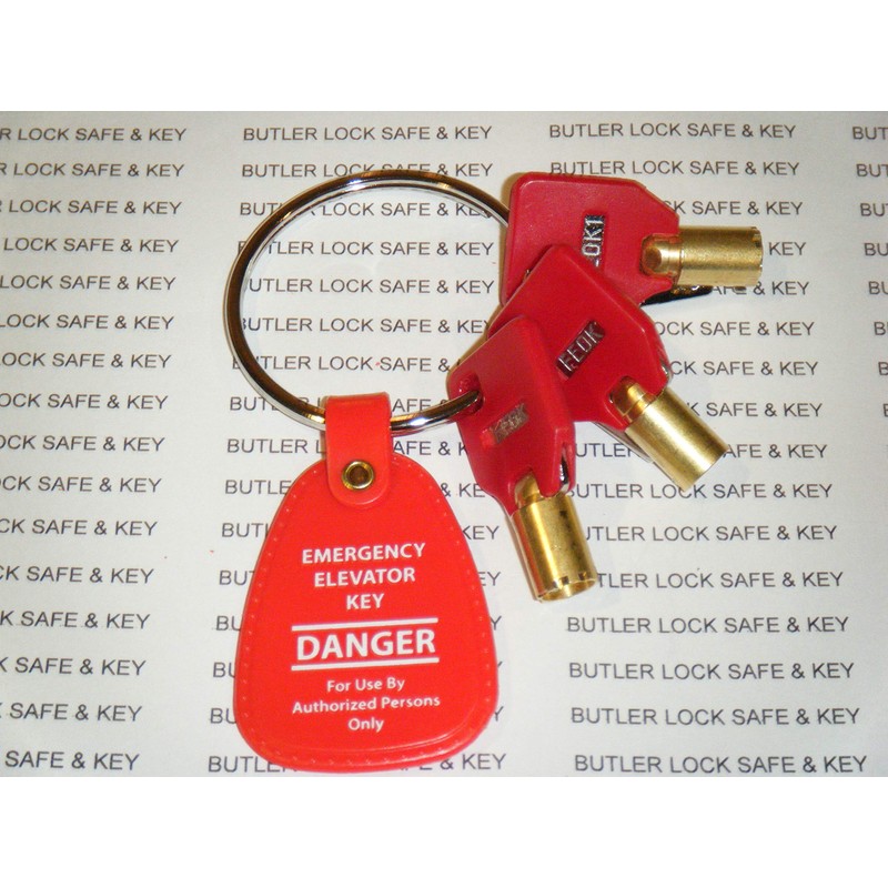 FEO-K1 Elevator Key Fire Service Keys 3 Keys RED Caps for Easy Identification...