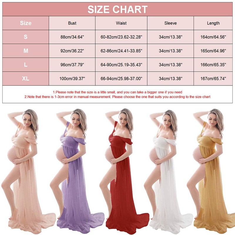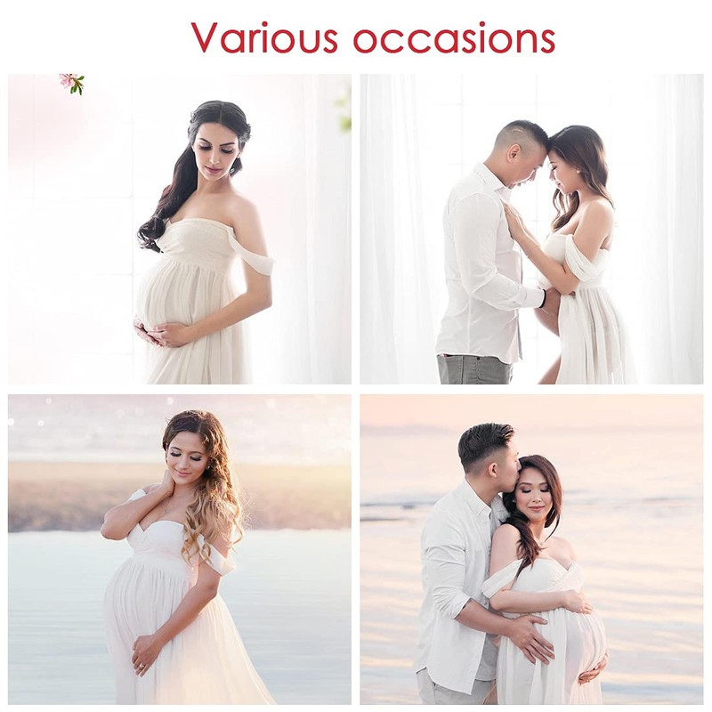 - Feature: Elegant solid color, sexy shoulder chiffon fabric, front part design shows your sweet belly, long maternity dress for women.