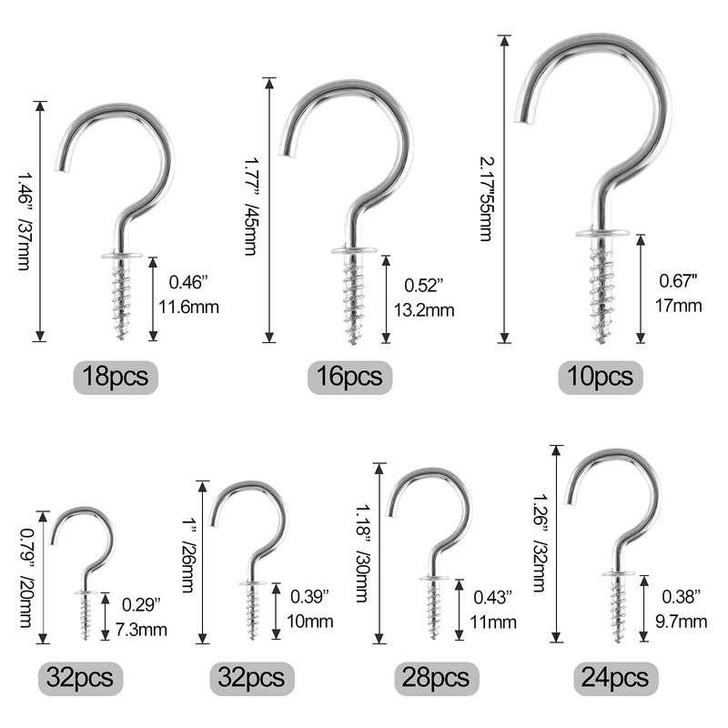 - Totally you get a 160 piece cup hook set,all screw hooks are put in a transparent box,strong and durable