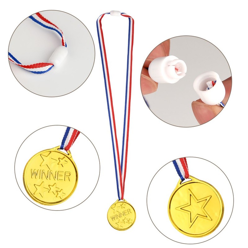- Toy medals with white connector in the end of the ribbon, easy to wear