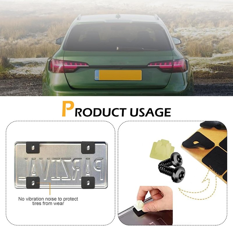 - Anti-Rattling: This license plate screw kit comes with anti-vibration pads and screw pads to cushion and protect, reduce license plate vibration noise and avoid scratching the paint surface. Same as It also prevents rain and dust from entering.