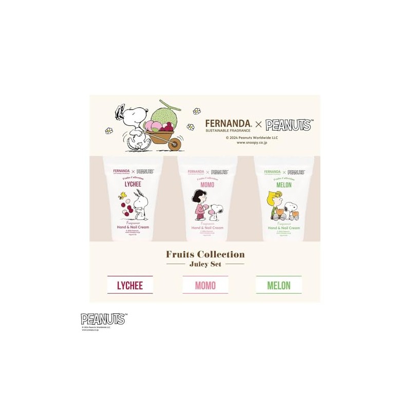 Fernanda Mini Hand & Nail Cream Juicy Set (Litchi, Momo, Melon) / Fernanda x Peanuts (0.5 oz (15 g) x 3 Pieces)
