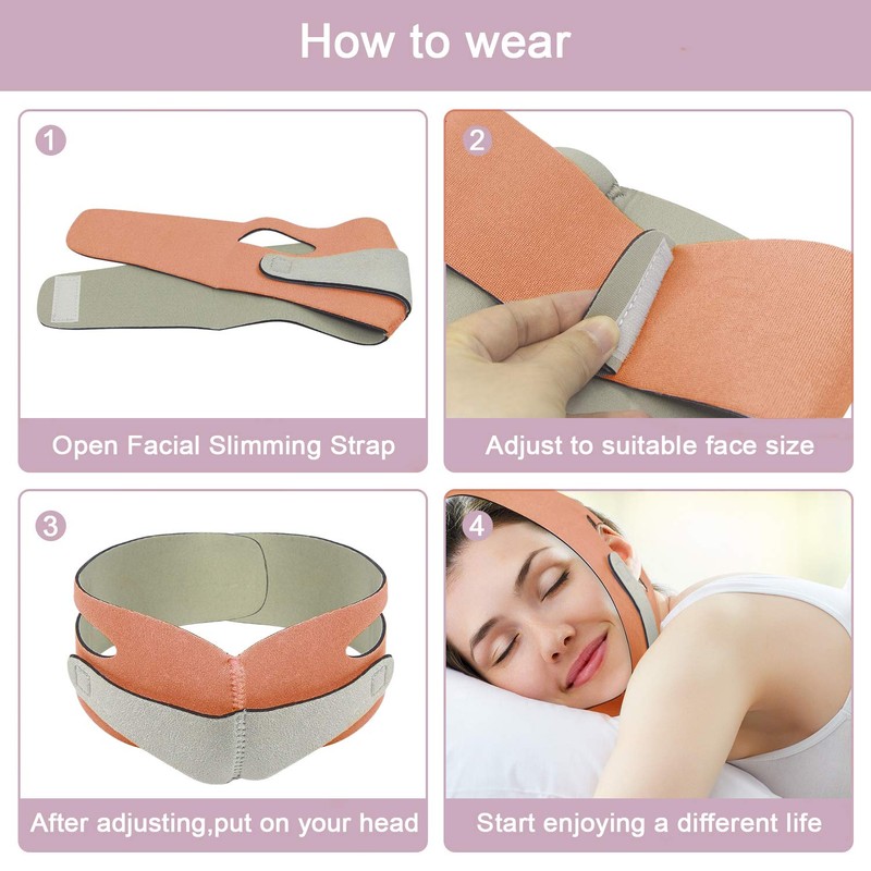 - [Easy to Use] The face lifting band is easy to use. You can wear the belt while sleeping, reading, working or Watch TV. Keeping your chin up and improve facial contours at any time. The face slimming band is washable and reusable.