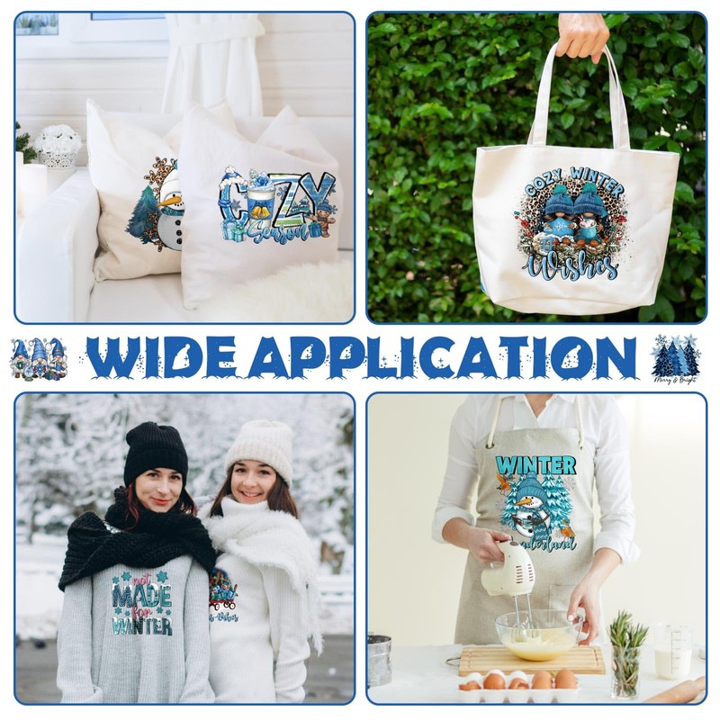 - Classic Wonderland Theme Design: these iron on decals for t shirts are designed with many wonderland elements, like snowflake, cedar, snowman and so on, which are full of art feels, attractive and elegant, easy to get others' attention, showing your good tastes