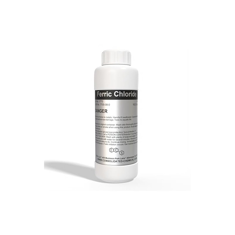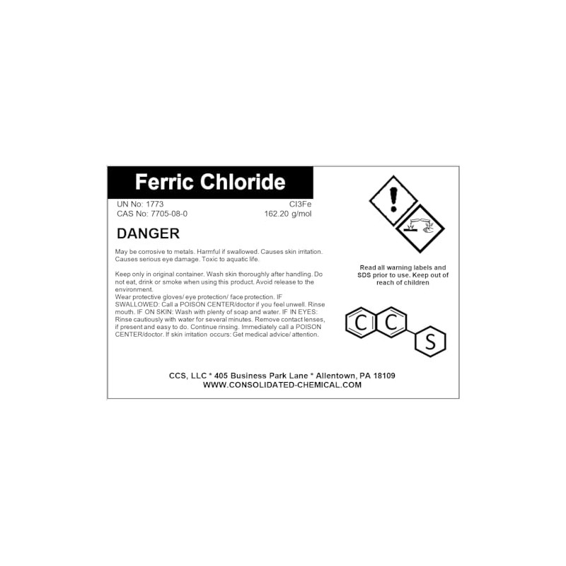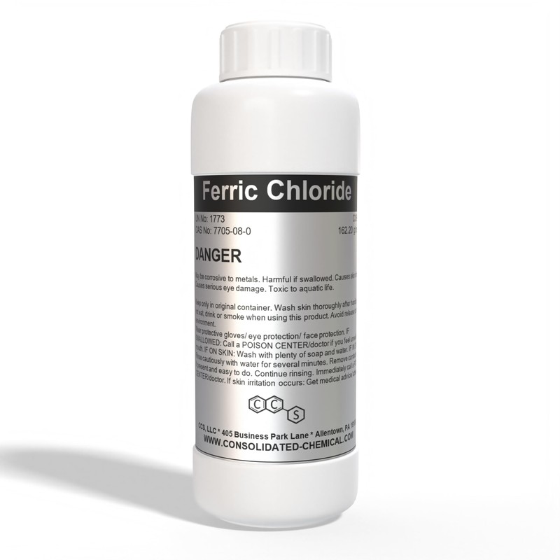 Packaged in a variety of sizes for your needs, our Ferric Chloride is securely sealed to prevent spills and ensure safe handling. The container is designed to maintain the product's purity and potency over time. Our product is manufactured under stringent quality control standards, guaranteeing that you receive a consistent and high-quality chemical with every purchase.