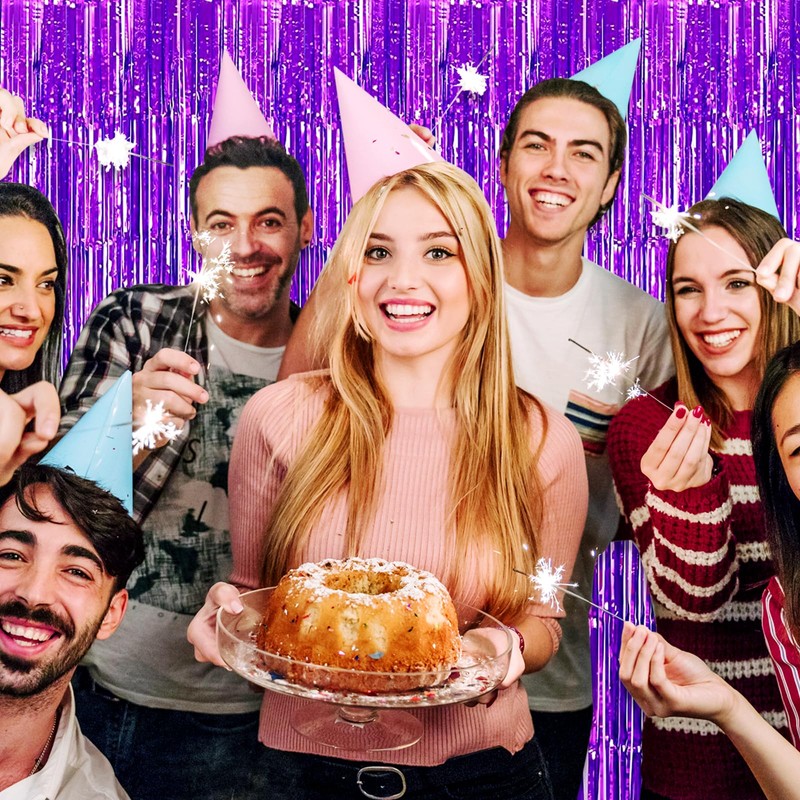 Ferwzsr 6 Pack Purple Foil Fringe Curtain Backdrop, 3.28Ft x 6.6Ft Metallic Tinsel Foil Fringe Streamer Curtains for Photo Booth, Christmas Day, Thanksgiving, Wedding, New Year Party Decorations