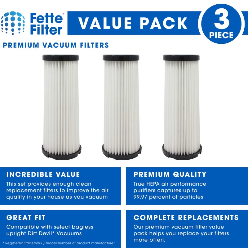 Fette Filter – Vacuum HEPA Filter Compatible with Dirt Devil F1 (F-1). Compare to Part # 3JC0280000, 3-JC0280-000 & 2JC0280000, 2-JC0280-000 (Pack of 3)