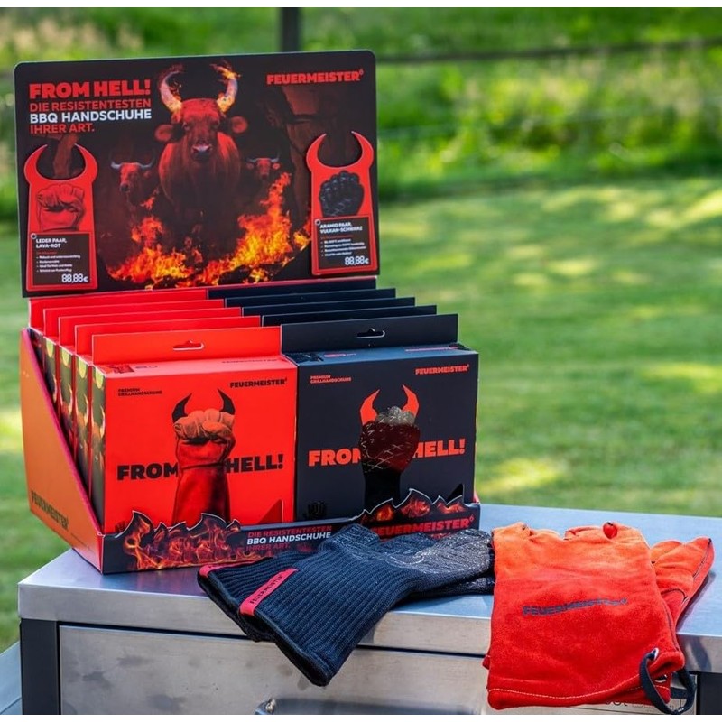 - Red grill gloves in size 12 from the brand. Feuermeister
