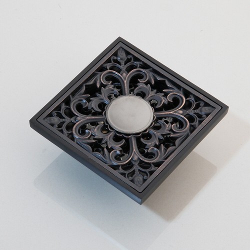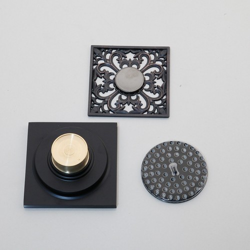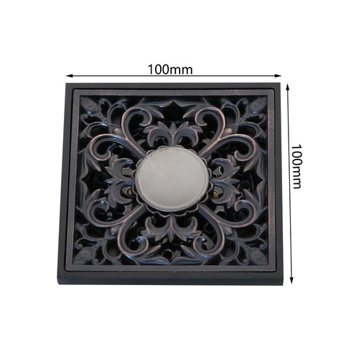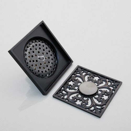 fexi64 US 4" Bathroom Square Floor Drain Cover Floor Embedded Carved Waste Water