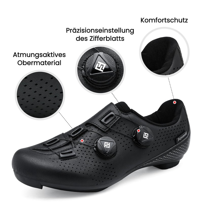 - PROFESSIONAL DESIGN Feyenold men's cycling shoes feature a creative design with durable arch to maintain the correct riding position; to prevent injuries to the ankles and knees. They improve power transmission and increase pedal frequency