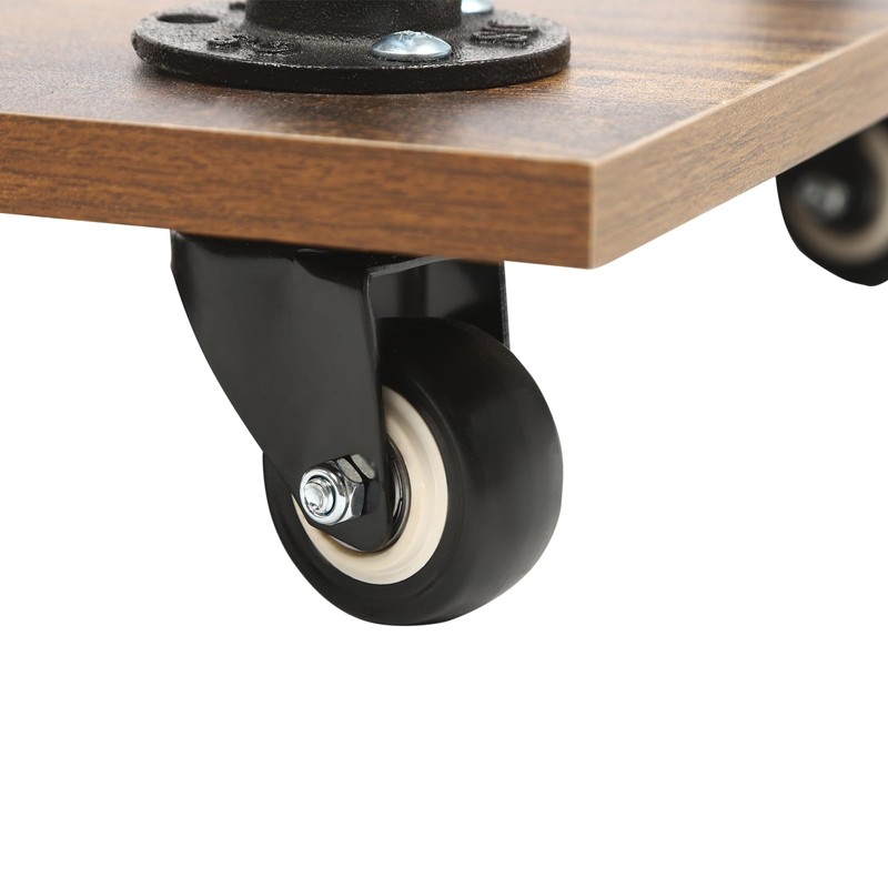 This industrial bar cart boasts two spacious particleboard shelves and high-temperature sprayed black steel pipes, exuding a retro and classic look and making it a versatile and practical addition to any room. Its universal wheels(two of them have brakes) make it easy to move or stop as needed for serving after-dinner drinks.