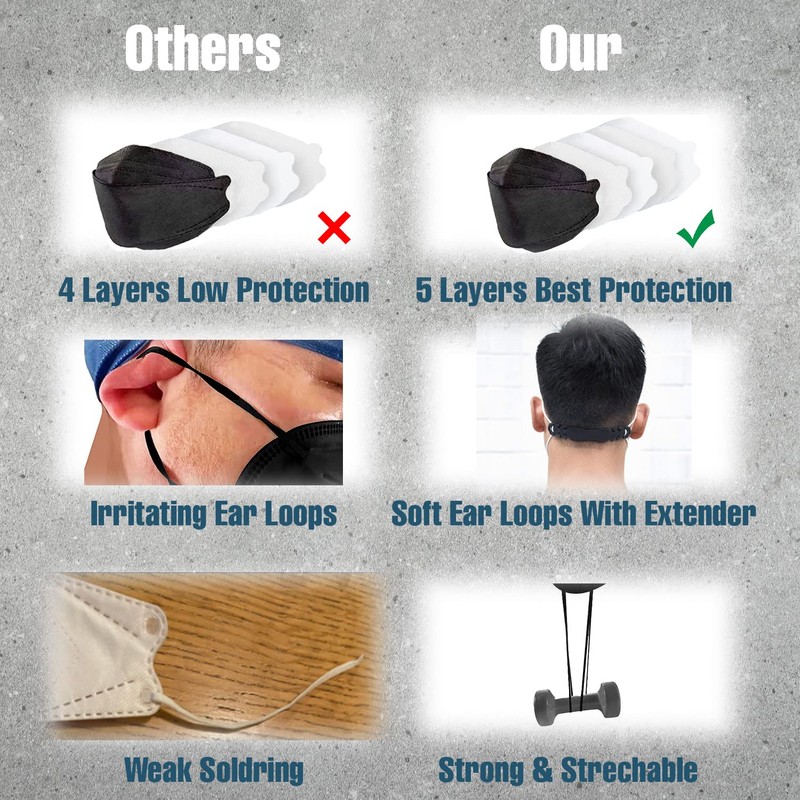 • [Comfort from fatigue] - Are you fed up with red ears? Loose Loops that just fall off? This mask solves those problems and ensures a longer wear time