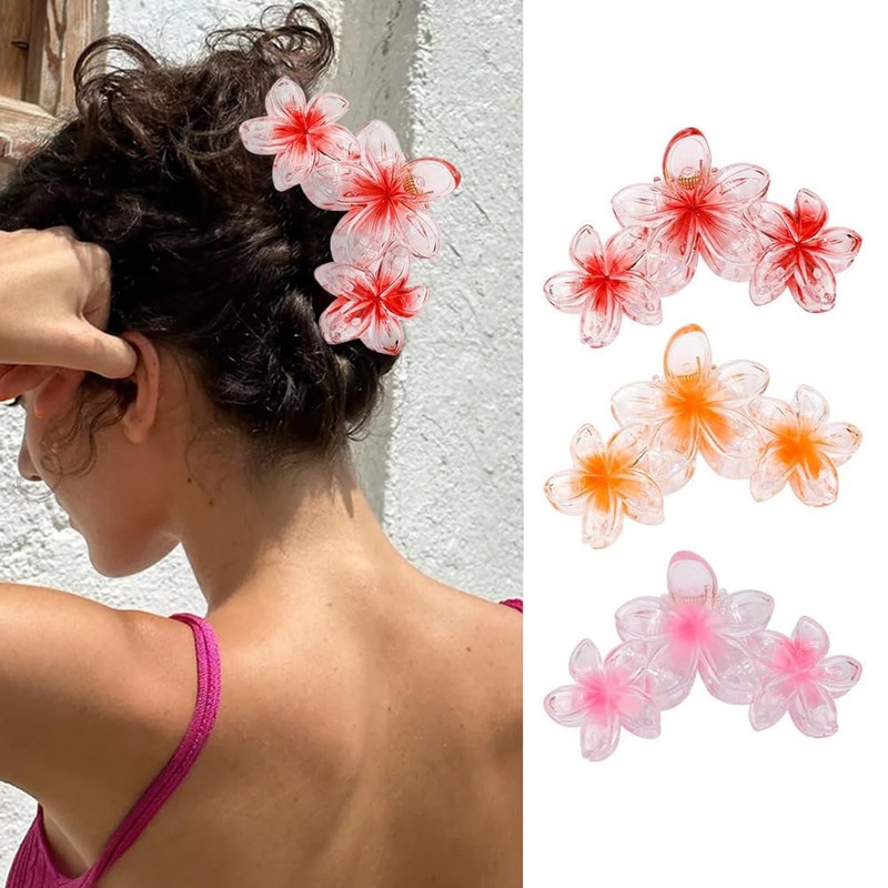 FFWTPY Pack of 6 Flower Hair Clips Women Girls Large Colourful Flower Hawaiian Hair Clip Non-Slip Hair Clip Claw Clip Hair Clips Hairdressing Supplies for Thick & Thin Hair