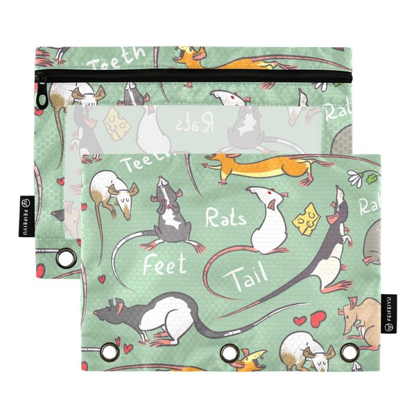 FFYHO Binder Pencil Pouch 2 Pack,Pattern with Fancy Rat Waterproof Pencil Pouches with Smooth Zipper, 3 Ring Clear Window Pencil Case Large Capacity for Teachers Clerk Doctors Nurses