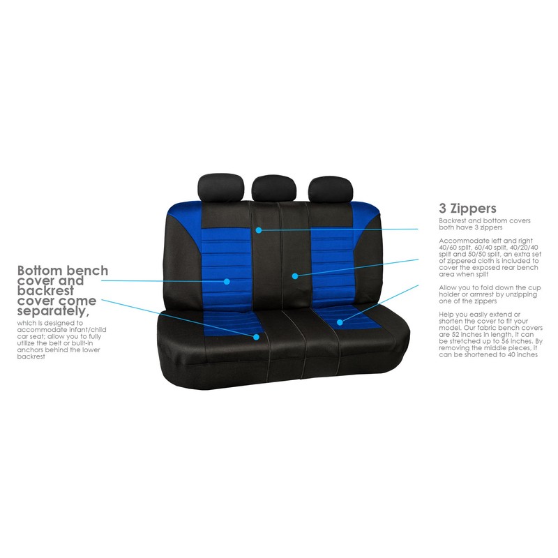 FH Group FB068BLUE115 Blue Universal Car Seat Cover (Premium 3D Air mesh Design Airbag and Rear Split Bench Compatible)