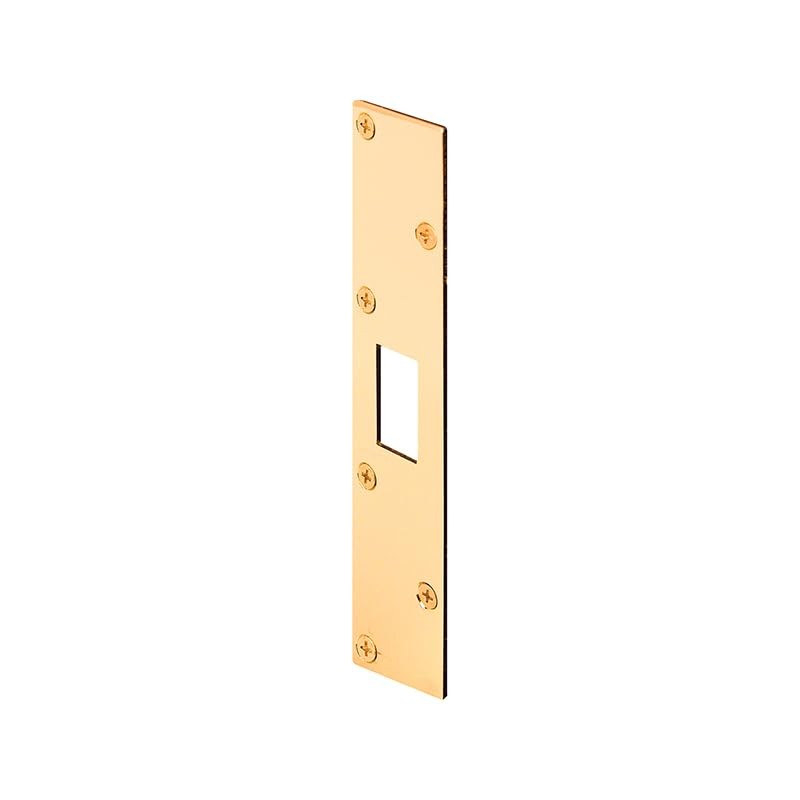 This Deadbolt Strike is constructed of heavy gauge steel and it comes in a brass-plated finish. This heavy duty deadbolt strike replaces most deadbolt strikes and increases security with the 3-inch screws included within each pack. Use of long fasteners allow the deadbolt strike plate to fasten deep into the wall stud beneath the thin 3/4 inch door jamb. The plate can be used with most entry door applications.