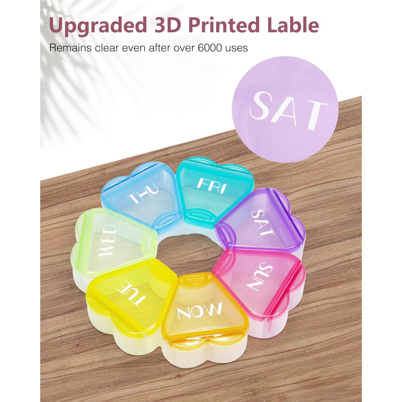FHORAIN Weekly Pill Organiser, Cute, Round, Large Compartments, 7 Days Tablet Box, Travel Case for Vitamins, Fish Oils and Supplements (Rainbow)