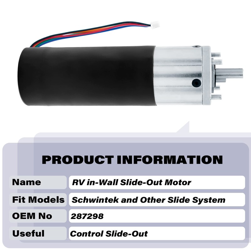 • 【UPGRADED QUALITY】This slide-out motor can provide excellent performance and long service life. A rubber compartment is installed on the outside to effectively protect the internal circuit. Better circuit connection and surface treatment process than most similar products. Replace the old slide-out motor and enjoy your travel time!
