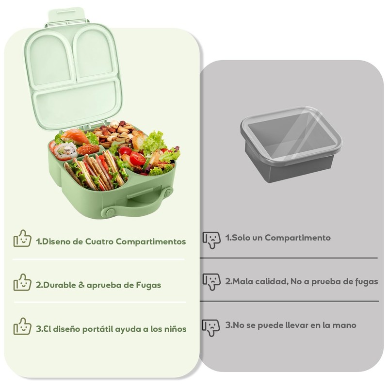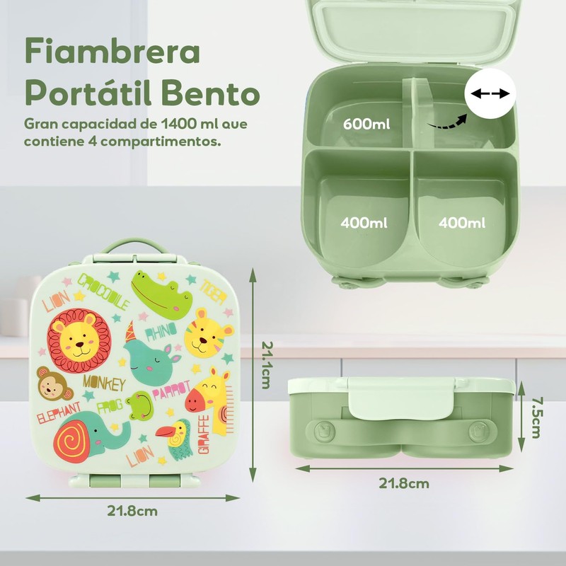 - 🍱【Serie ideal para Niños】: La lonchera para niños incluye 4 compartimentos, divisores extraíbles y frasco para salsa. Los 4 compartimentos están perfectamente distribuidos para satisfacer el apetito y mantener los alimentos separados. Los divisores extraíbles permiten a los padres ajustar el tamaño del compartimento según sea necesario o simplemente quitarlo para acomodar más refrigerios o una botella de leche.