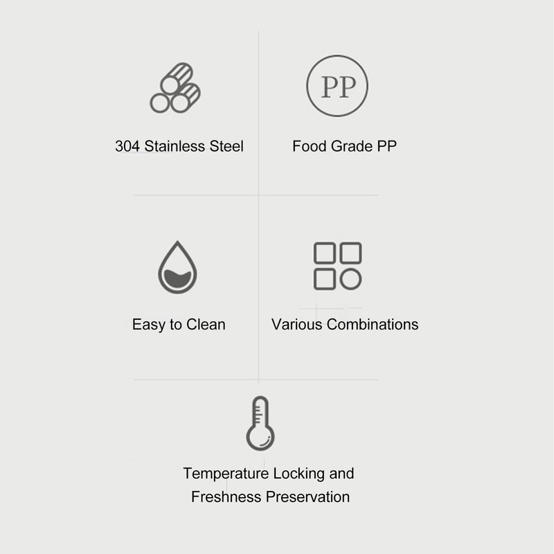 - 【Excelente rendimiento de aislamiento】El acero inoxidable 304 es un material con un excelente rendimiento de aislamiento, que puede mantener eficazmente la temperatura de los alimentos y mantenerlos deliciosos. Esta solución todo en agiliza su viaje culinario, brindándole más tiempo para saborear los sabores y momentos que importan