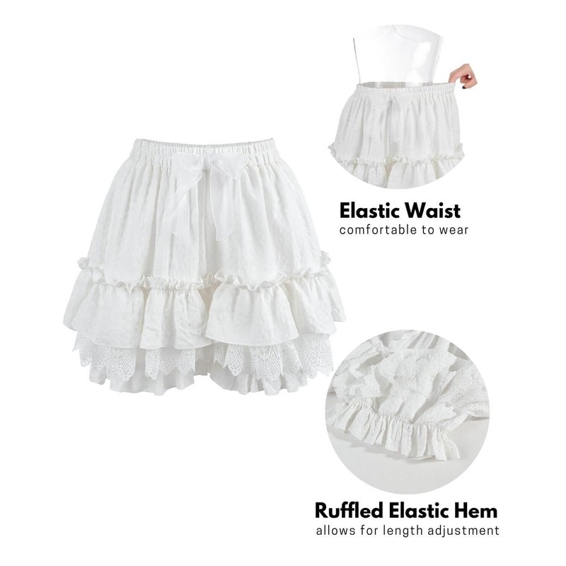 - ♛Design:The white bloomers for women have elastic at the waist and hem, double layer with ruffle and lace details. A cute bow at the waist, loose fit.