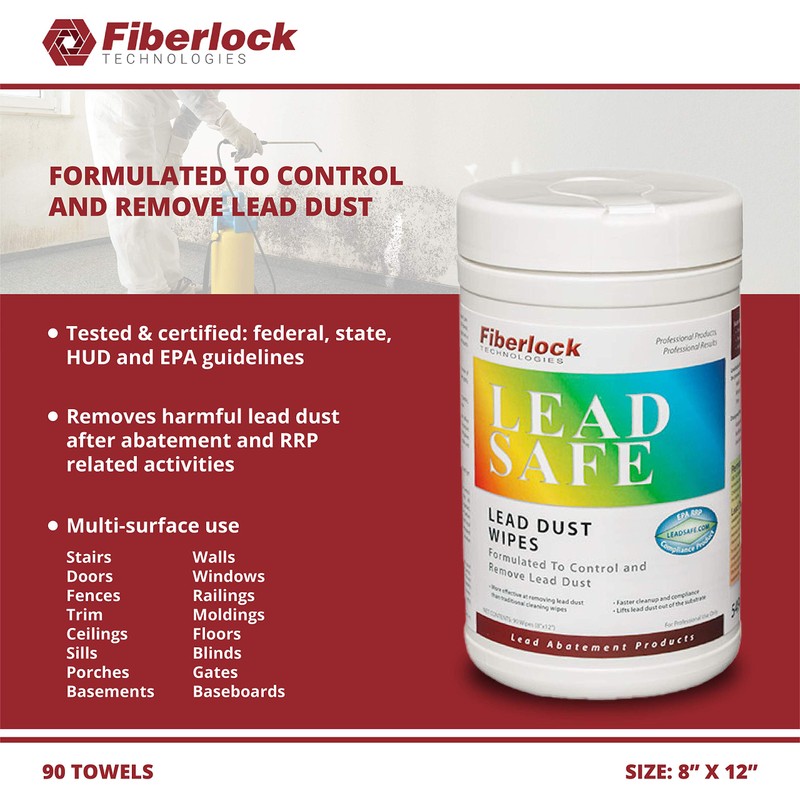 FIBERLOCK Dust Wipes, Lead-Based Paint Multi-Surface Cleaner, Lead Remover, Hazard Protector - 5498 - 90 Wipes