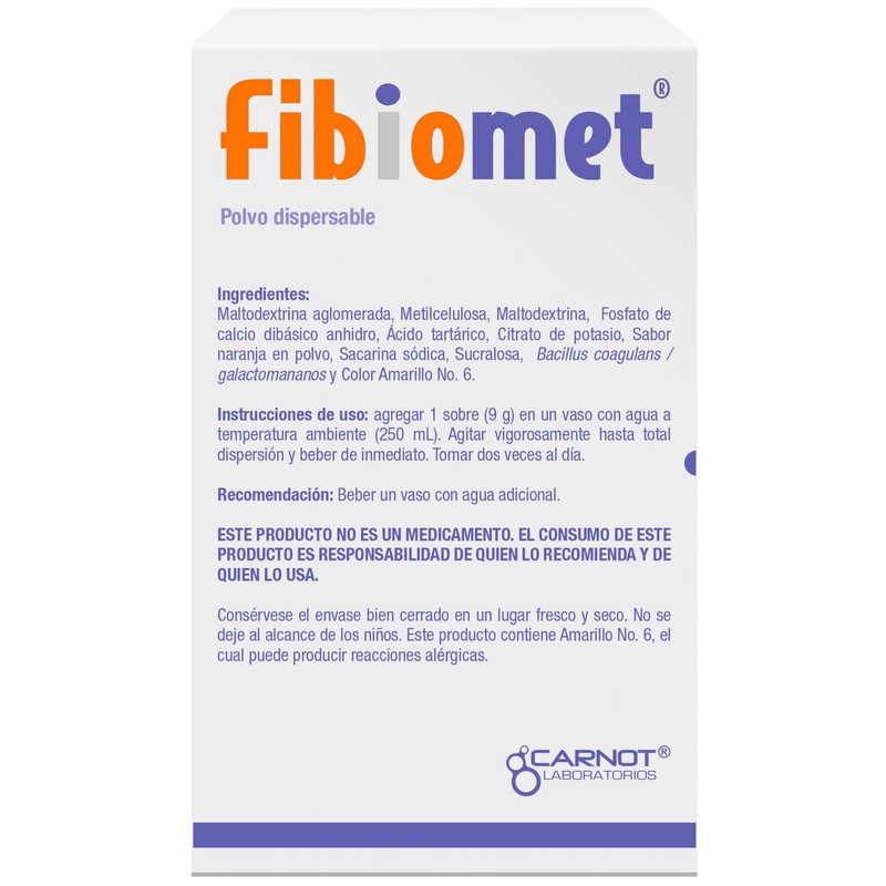 • Fibiomet Sobres: 10 sobres de 9 gramos.