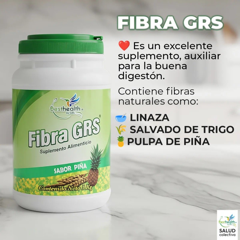 Fibra GRS 1 Kg Best Health Auxiliar para una Digestin Saludable Fibra Natural con Linaza molida, salvado de trigo y pulpa de pia