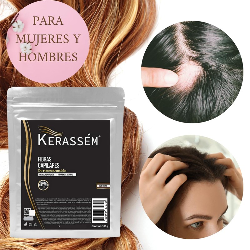 Fibras Capilares 100g Cubre Calvicie Kerassém Varios Tonos - Solución Para la Calvicie, Caída de Cabello, Alopecia, Pérdida de Cabello o Falta de Volumen. Fibra Capilar de Construcción de Cabello, Oculta Calvicie, Ideal para Cabello Delgado, Voluminizado