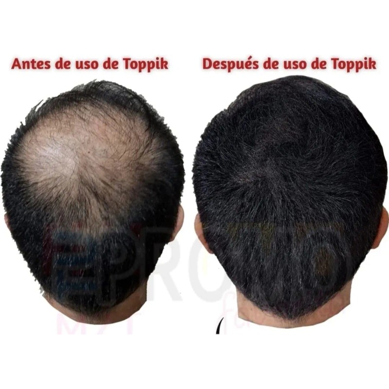 Modo de uso: Asegúrate de que tu cabello esté seco y peinado. Agita el envase de Topik sobre las áreas donde deseas más densidad, sosteniéndolo a unos centímetros de distancia. Da ligeros toques con la mano para ayudar a dispersar las fibras. Si lo deseas, utiliza el spray fijador Topik FiberHold para una fijación aún más duradera. Para retirar, simplemente lava tu cabello con champú.