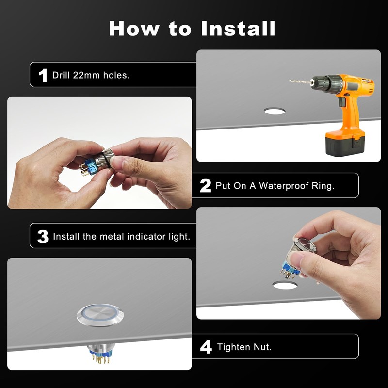 • Easy Install: It can be directly installed in a place where drill 22 mm holes or has 22 mm holes originally. Equipped with waterproof washers and nuts can be firmly fixed in the installation place after mounting. (Wiring method see below description)