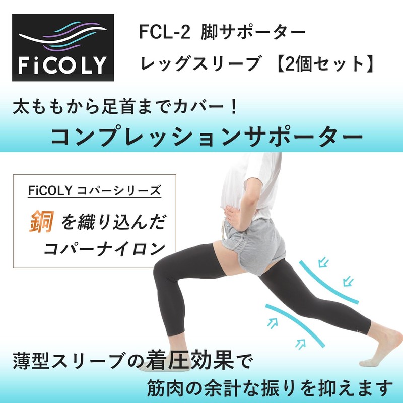 FiCOLY 脚サポーター レッグスリーブ 着圧 太もも ふくらはぎ フルレッグ コンプレッション メンズ レディース 薄手 大きいサイズ スポーツ 【2個セット】 FCL-2 (S)