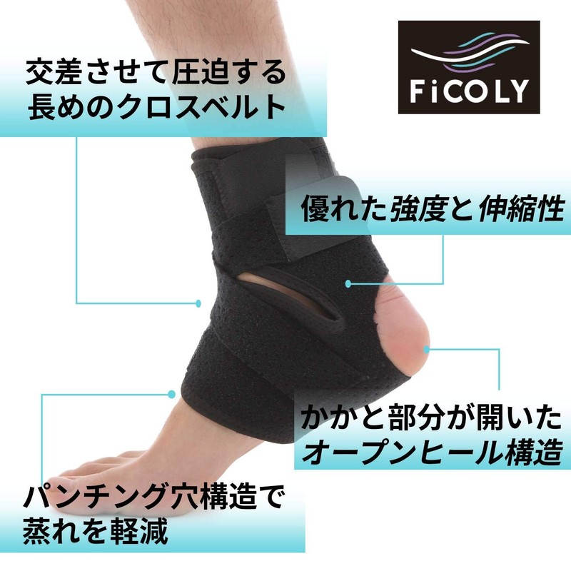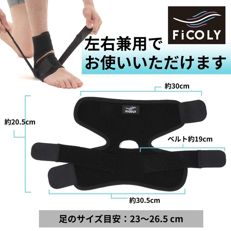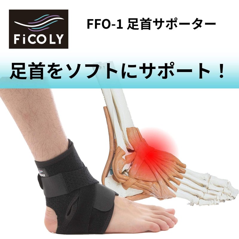 - 【FiCOLY 足首サポーター FFO-1】日常生活の支えとして、また登山や筋トレ、ランニングなどの、スポーツ用としてもお使いいただける足首サポーターです。着用により足首を固定、前後左右へのぐらつきをサポートします。右足、左足両方にお使いいただける、左右兼用タイプです。