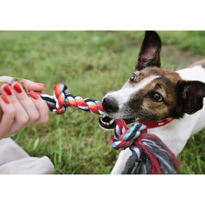 【4 PACK】 1 Cotton Rope Ball, 2 rope doggy toys with tug, 1 rope toy with ball. Good choice for Tug of War, Toss and Fetch Games, and Teething of your puppy. Works for aggressive chewers and teething puppies(NOT EXTREMELY aggressive).